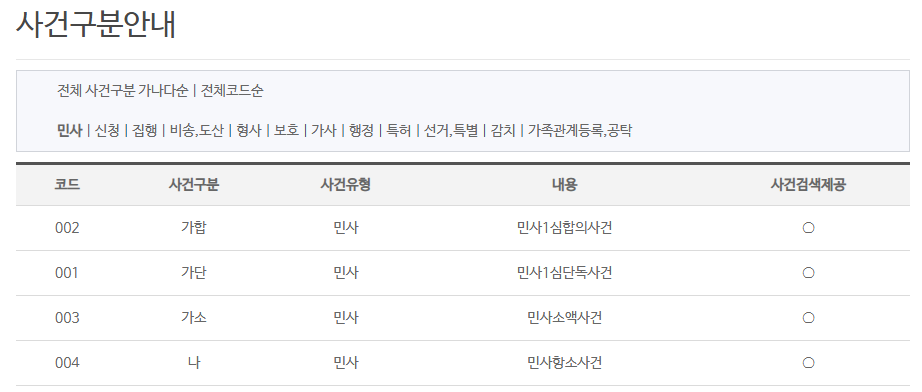 사건번호만 알고 있다면, 별도의 로그인 없이도 사건의 기본 정보를 확인할 수 있습니다.