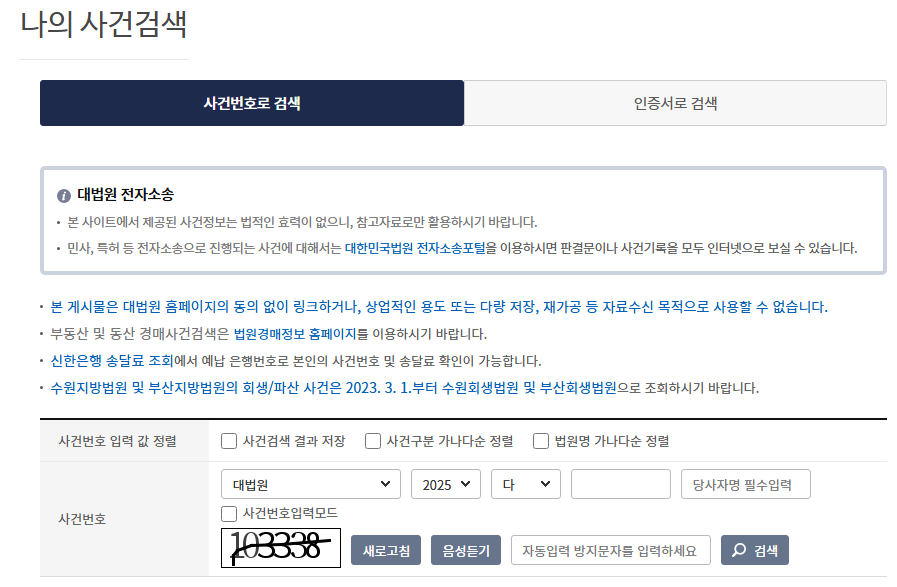 - 사건번호 입력 시 띄어쓰기나 구분자 오타에 주의해야 합니다.